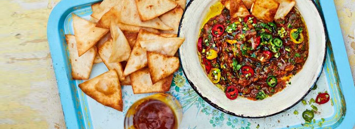 5. Spoon the salsa into a serving bowl, top with pickled chilli mixture and serve with tortilla chips.â¨